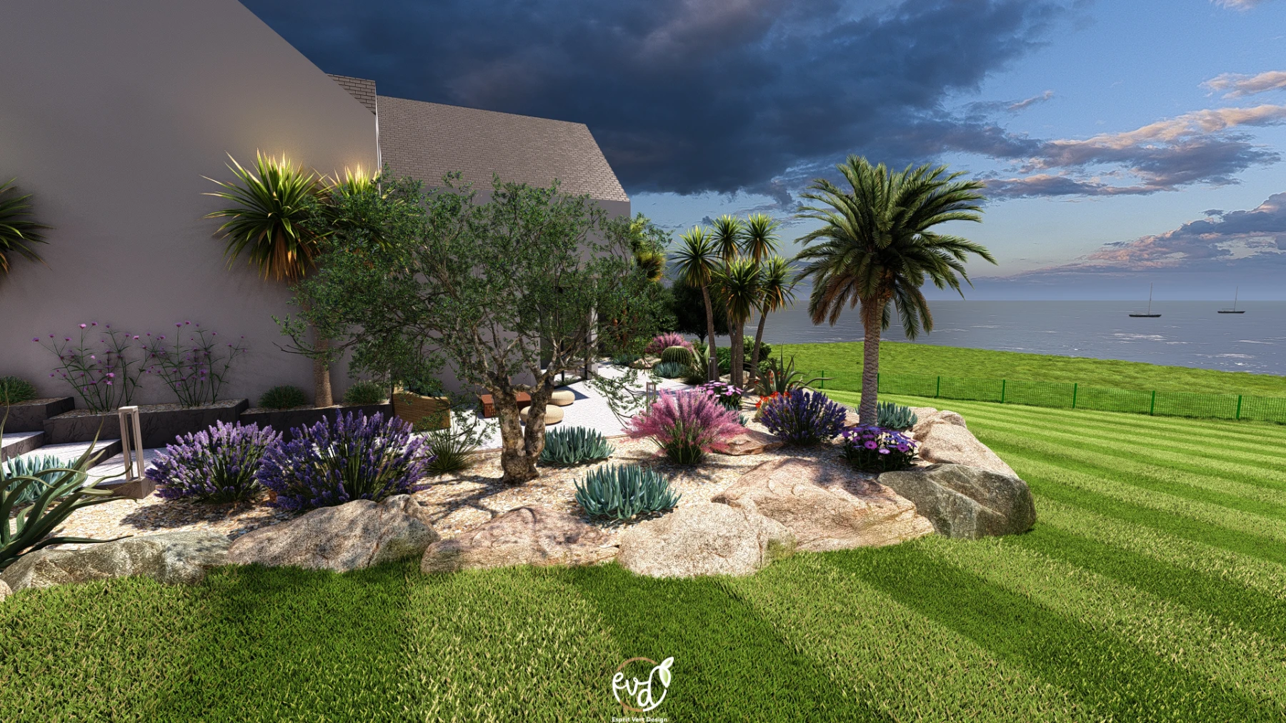 Ce projet de jardin en bord de mer à Pordic allie harmonieusement fonctionnalité, confort et esthétique, tout en respectant les spécificités du terrain et en intégrant des éléments de design moderne. Ce jardin devient un véritable havre de paix où l'on peut profiter de la vue et du climat marin tout au long de l'année.