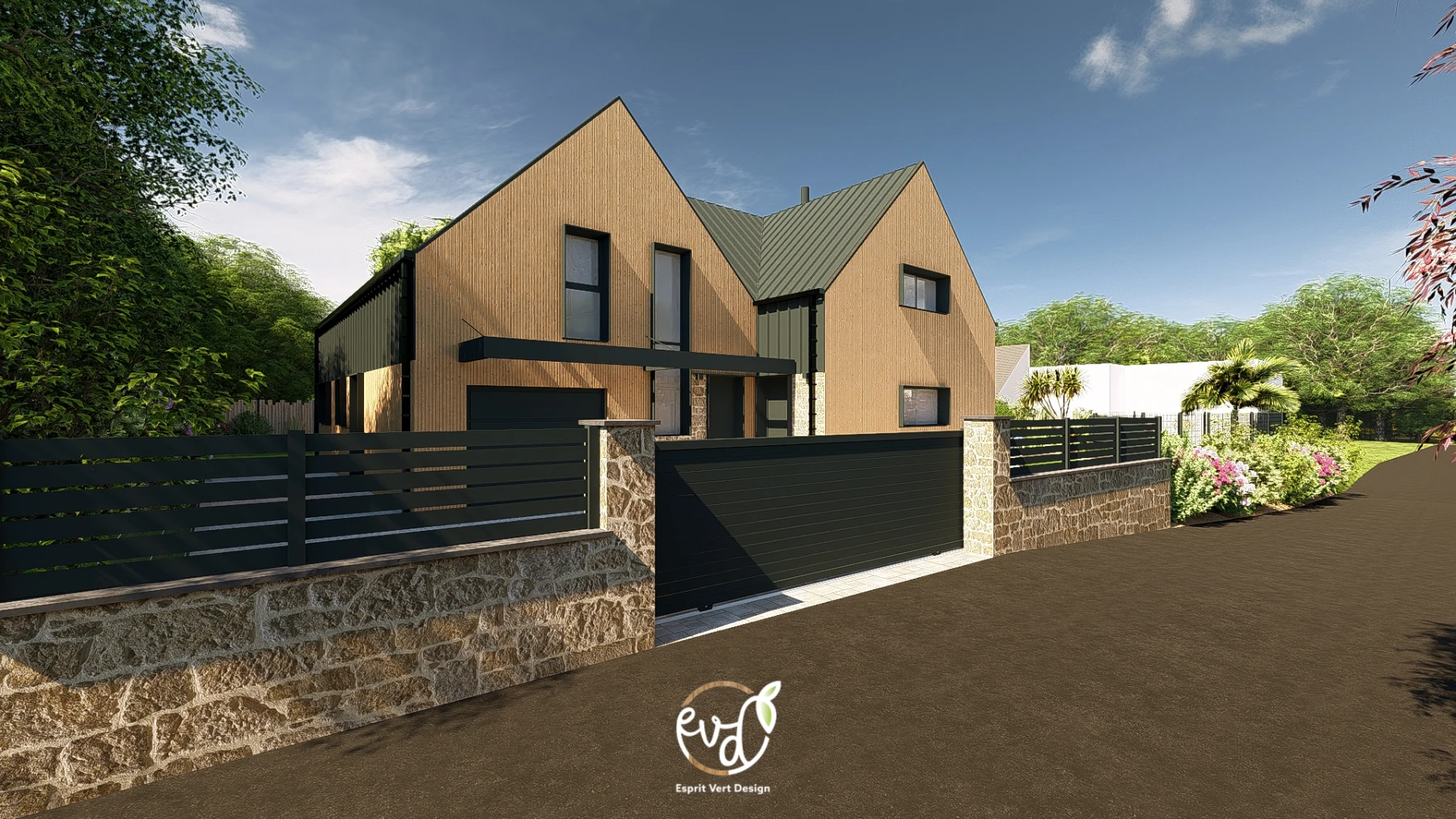 L’entrée du jardin a été soigneusement aménagée avec des murets en parements de pierre, apportant un charme authentique et intemporel. Un portail coulissant en aluminium complète cet espace, alliant modernité et praticité.