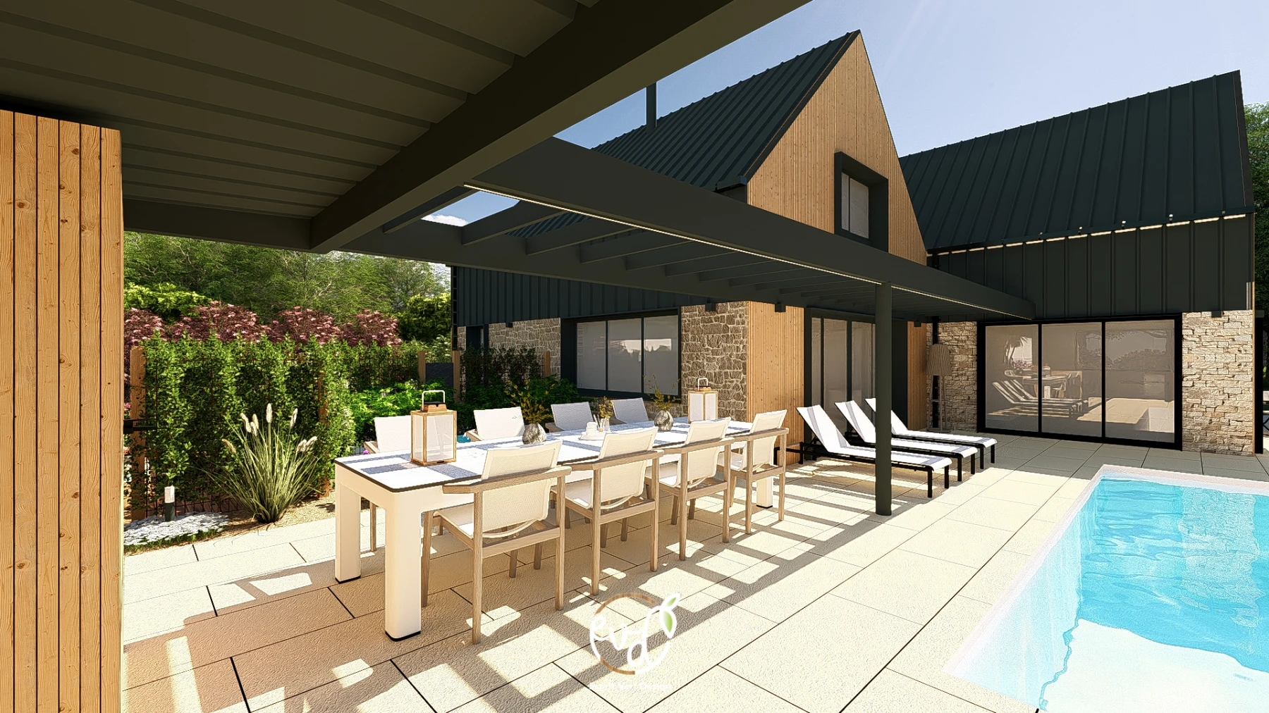 Nous avons installé une piscine moderne, entourée d’une élégante terrasse en grès cérame. Ce matériau durable et esthétique offre une ambiance raffinée tout en étant facile à entretenir.
