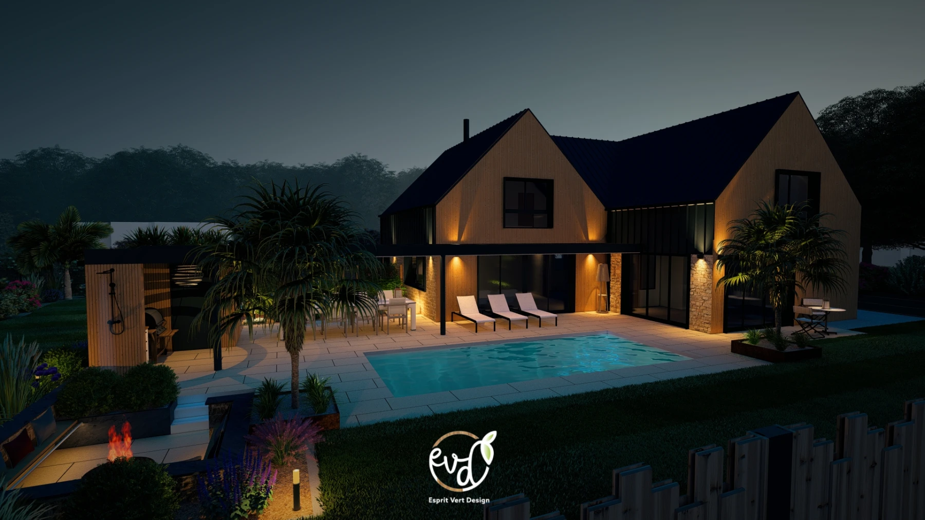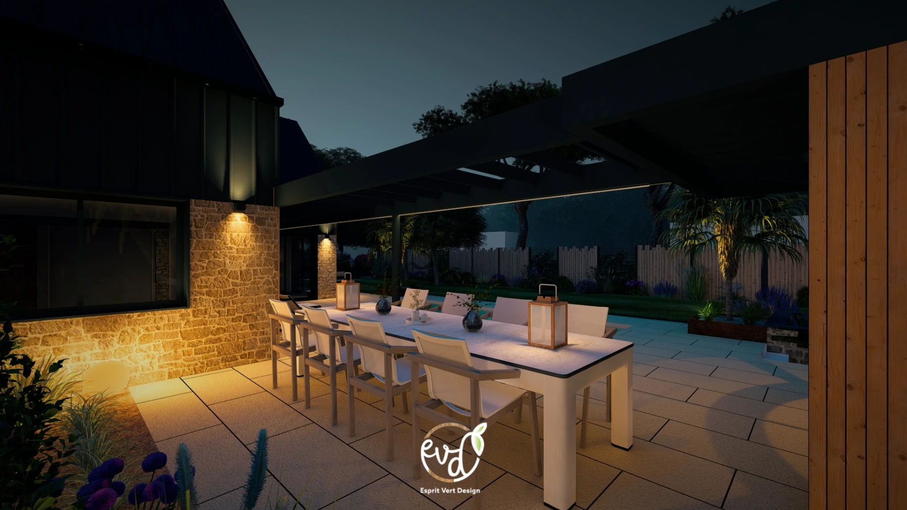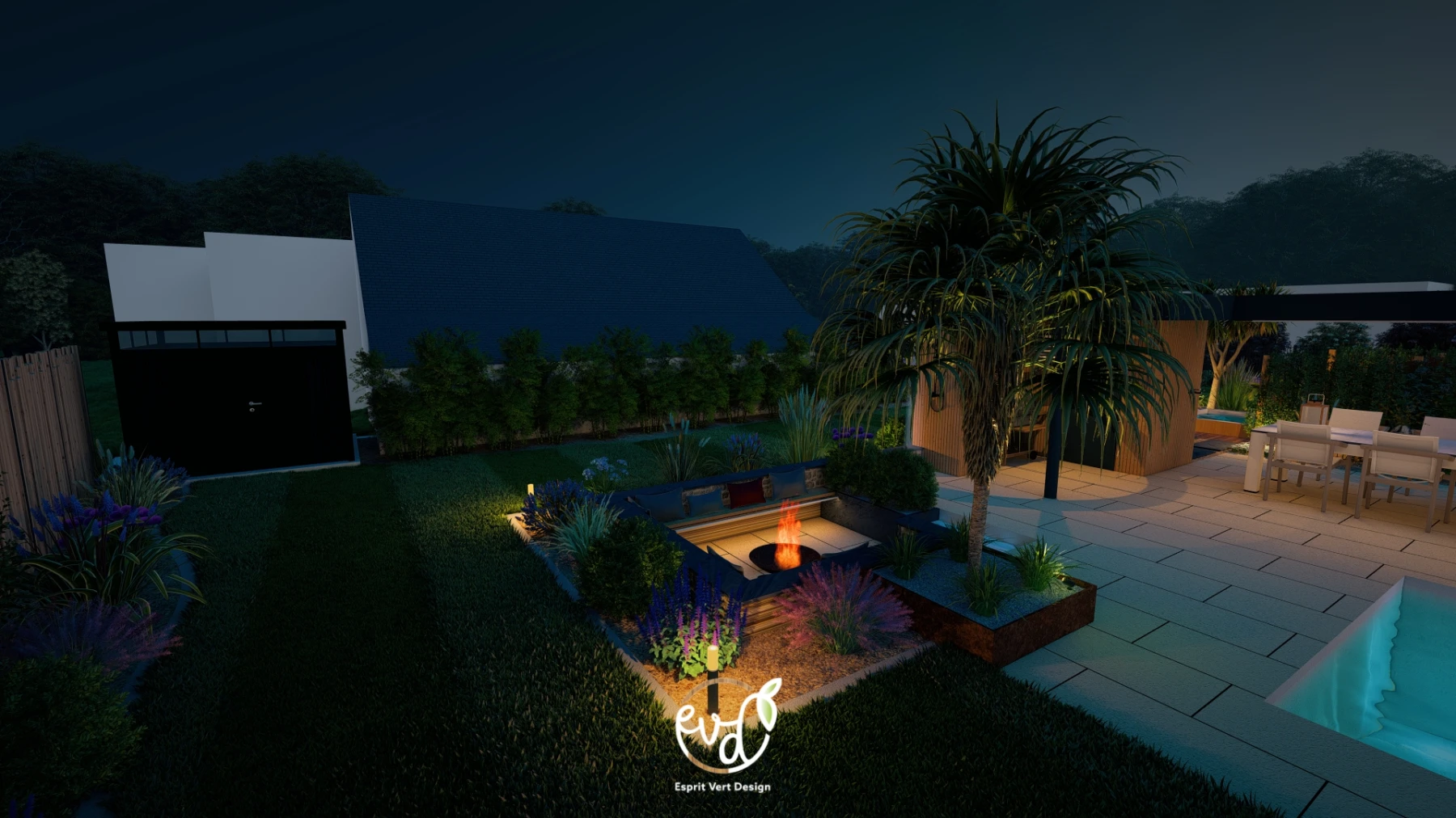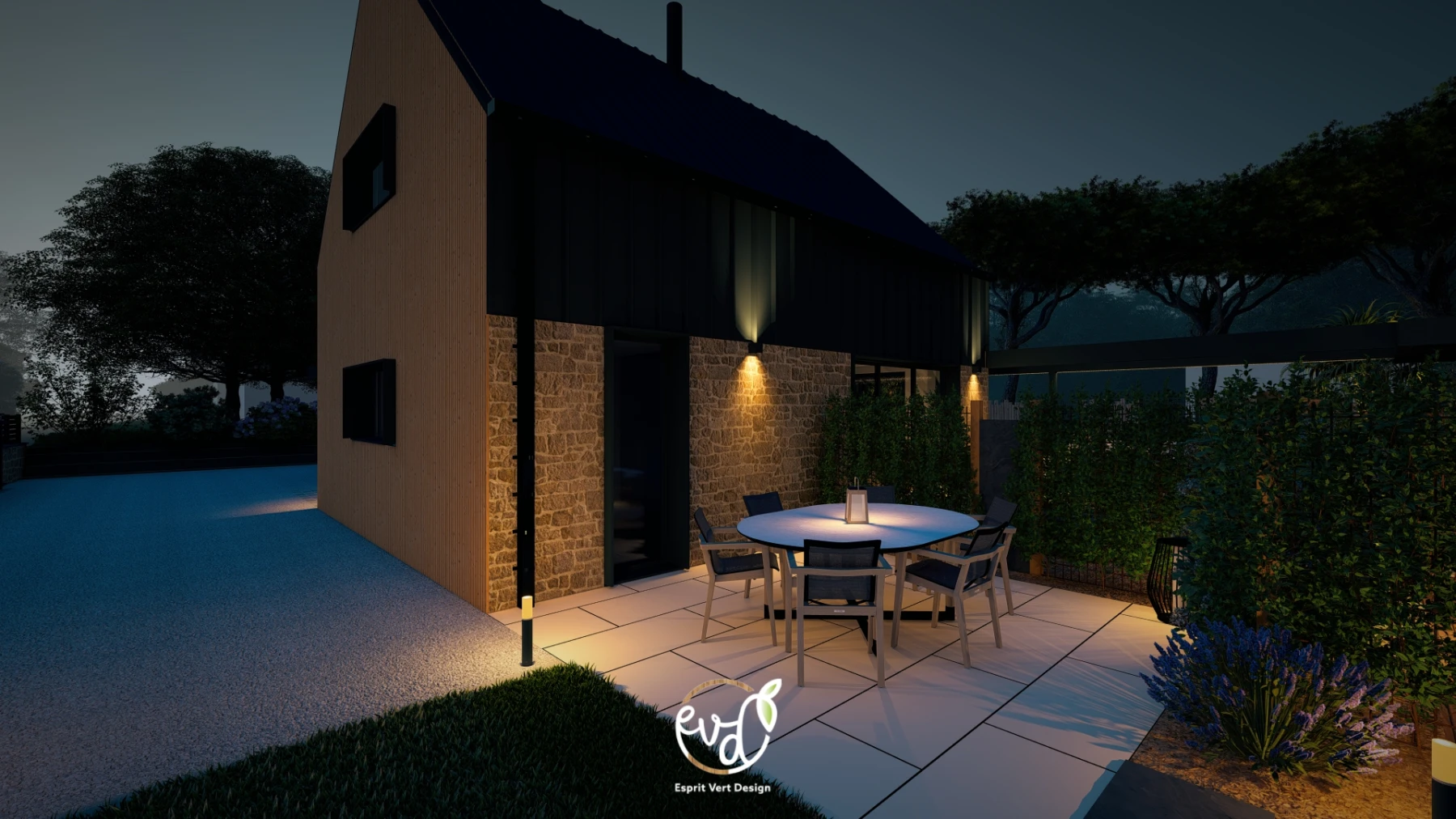 Plusieurs massifs ont été densément végétalisés, intégrant une palette végétale variée pour un effet naturel et apaisant. Enfin, des éclairages basse tension ont été installés pour illuminer le jardin à la nuit tombée, créant une ambiance intime et élégante tout en assurant la sécurité.